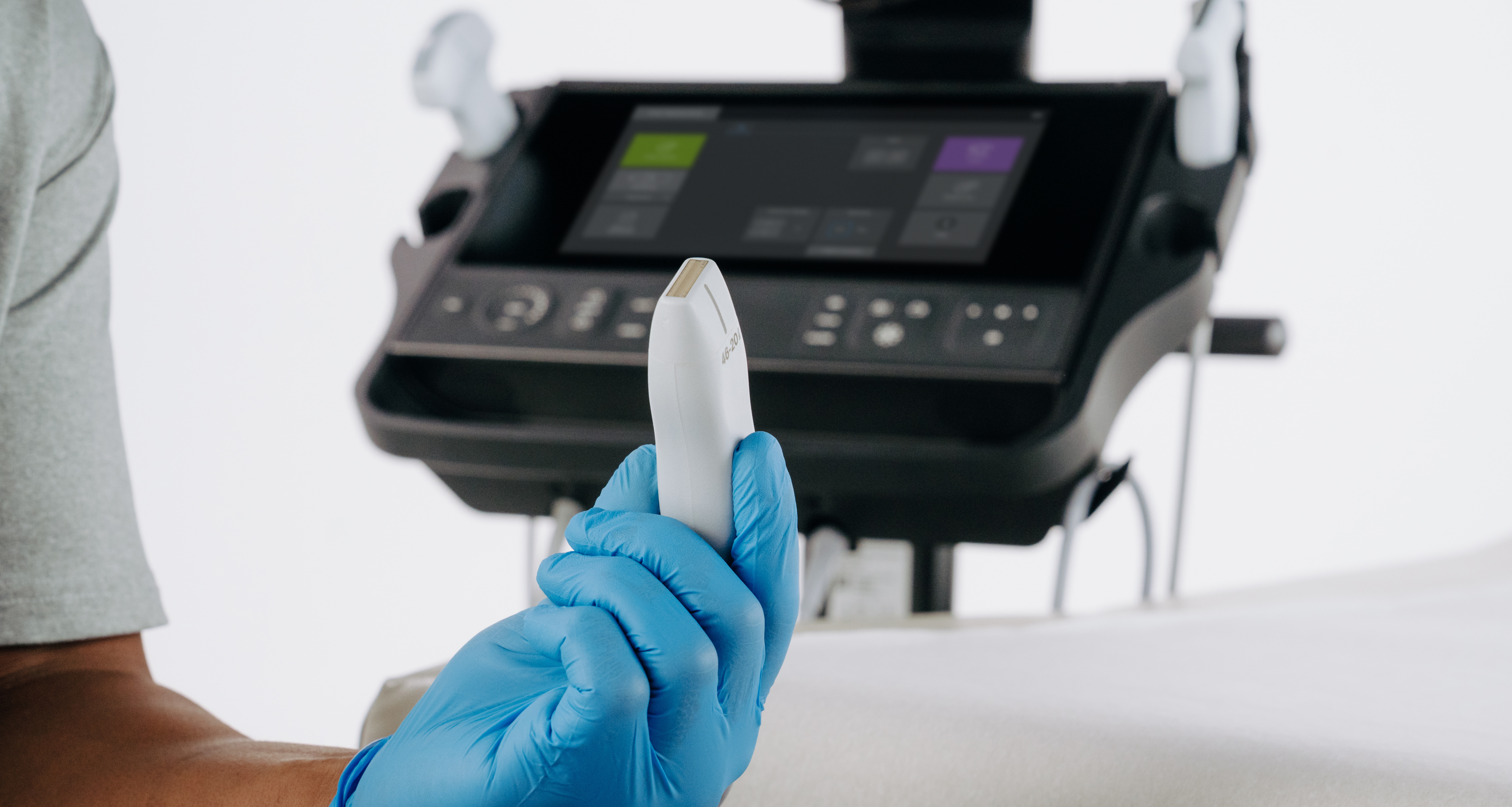 MSK Market Development Director, Daniel Shelton, shows off the capability of Sonosite UHF 46-20 with scans of a hair follicle and a vein. The scans were then illustrated to reveal details less obvious to the non-clinical eye.
