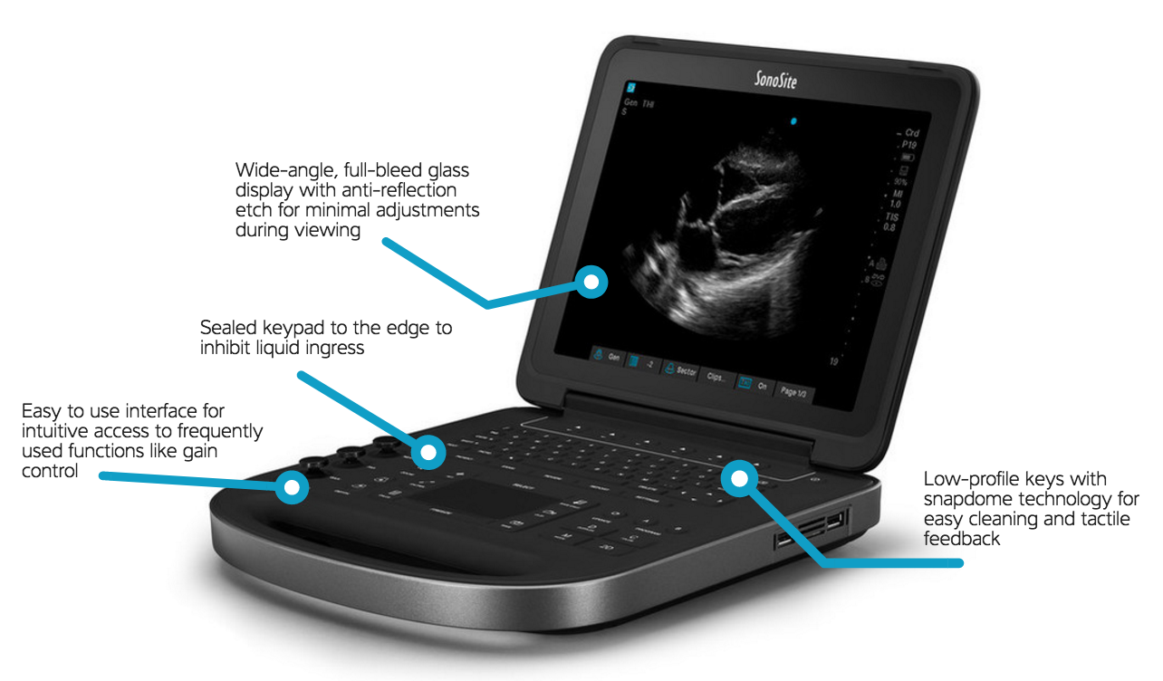 The Edge II features an easy-to-use interface for intuitive access to frequently used functions like gain and a wide-angle display with an anti-reflection coating for minimal adjustments during viewing. Learn more about the Sonosite Edge II here.