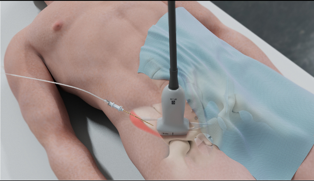 - Use the in-plane needle technique with a lateral to medial approach to target the injection of local anaesthetic deep to the Psoas Tendon.